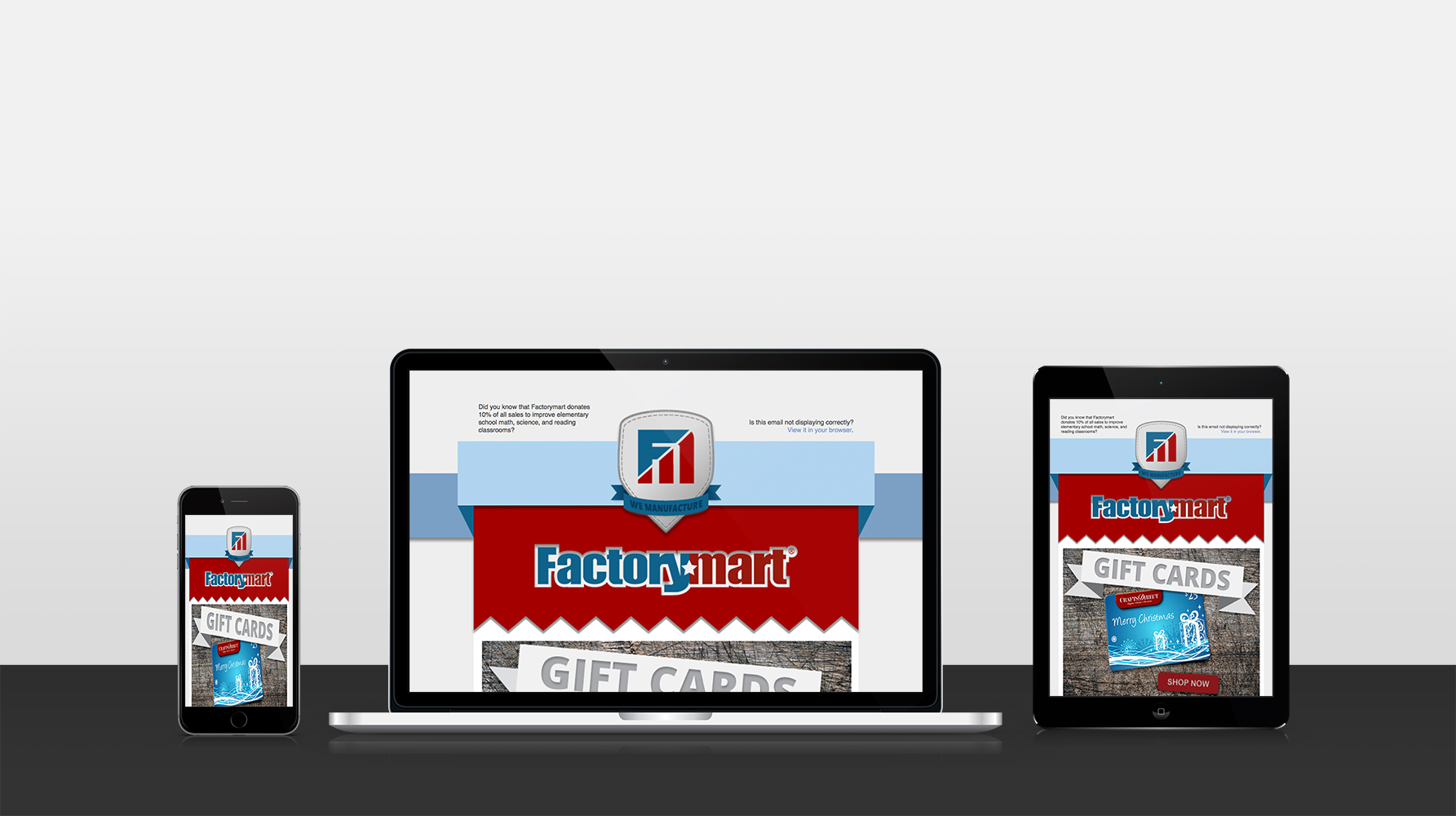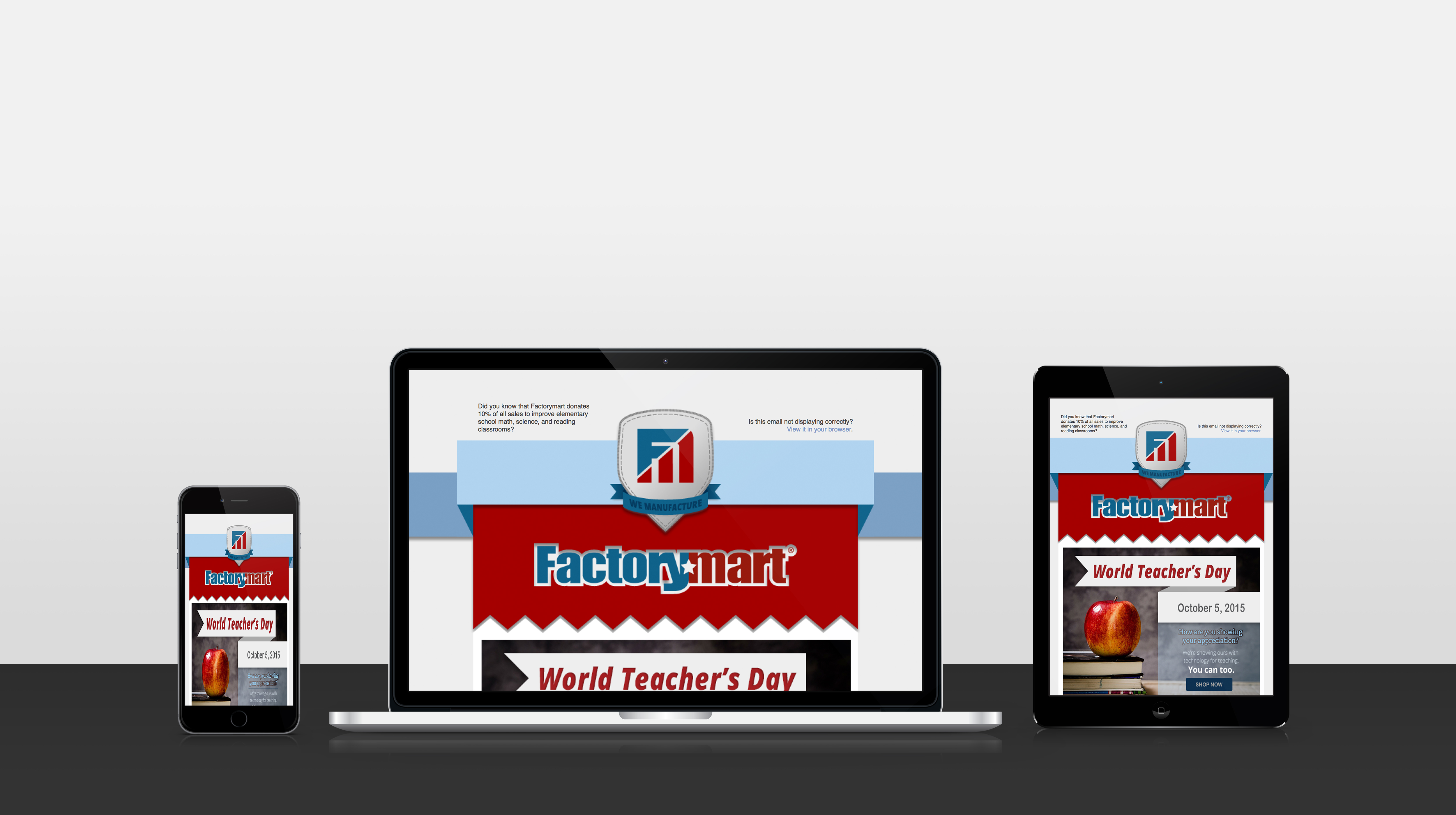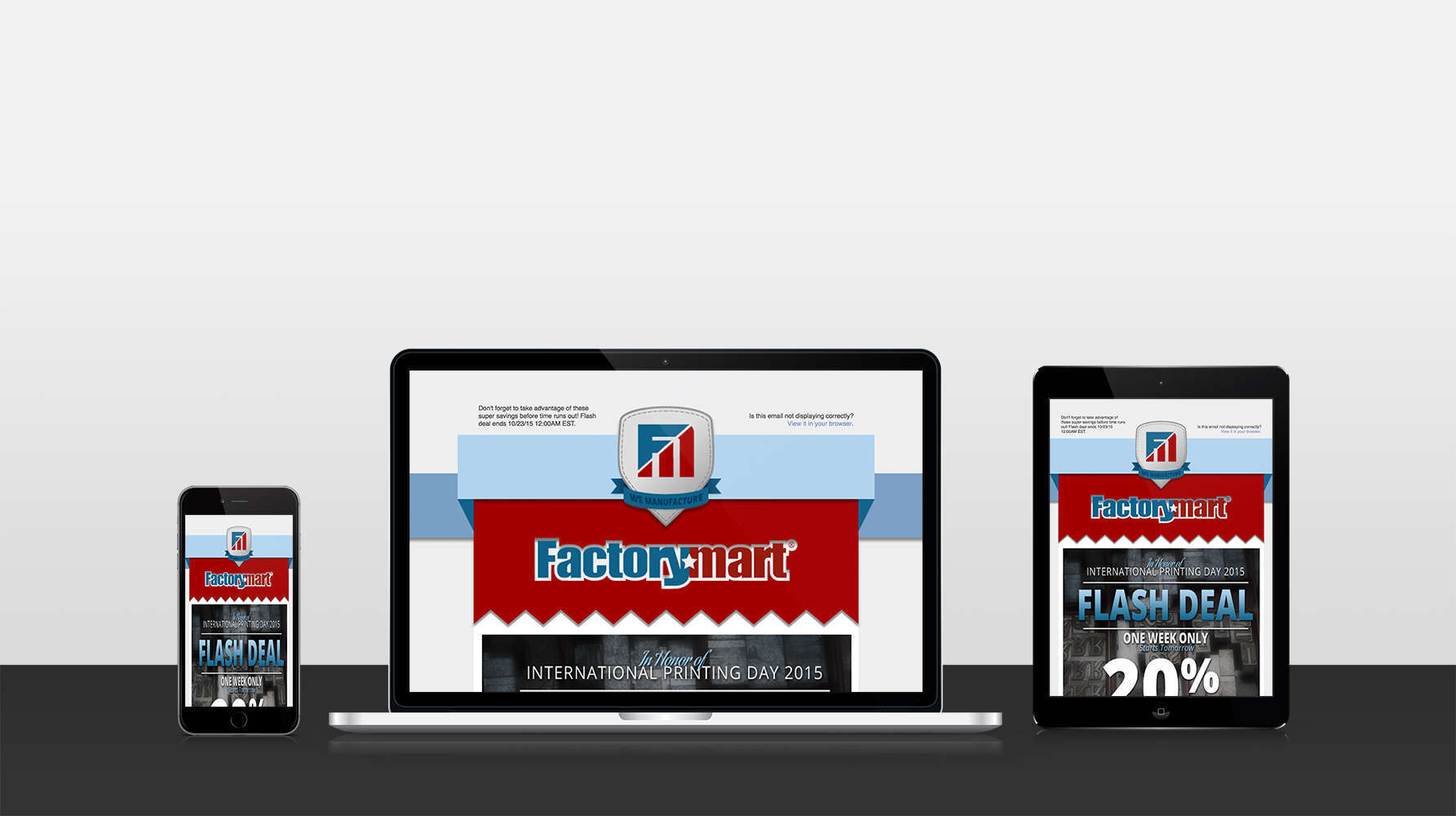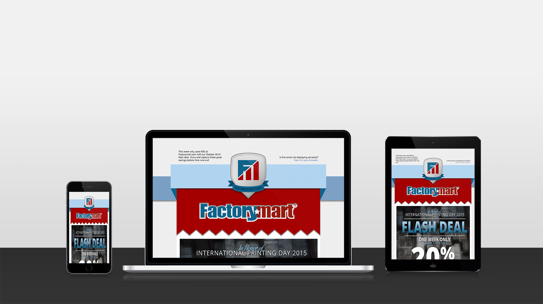 In addition to this, I was also tasked with rebooting Factorymart's email marketing efforts. In order to do so, I realized that Factorymart would not only need to establish a digital strategy but would also need to refresh their brand image in its entirety to ensure that all of their digital channels, including their email campaigns and social media profiles, would all look, feel, and sound the same. This meant cleaning up Factorymart's brandy identity and starting to create its very own personality, voice, and tone that would resonate throughout its brand. Building off of this work, I was then able to build a custom email template and develop an digital campaign strategy, which could then be executed according to a calculated timeline.
